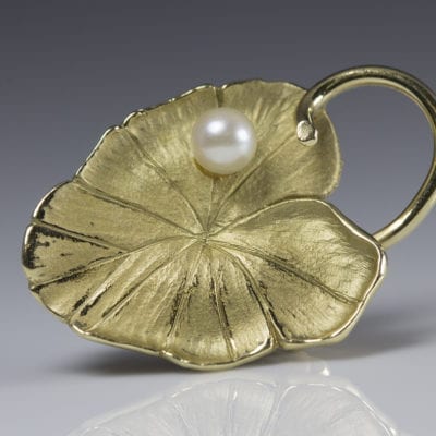 14k Yellow Gold Leaf Pad Pin w/ 4mm Akoya Pearl Accent – F51