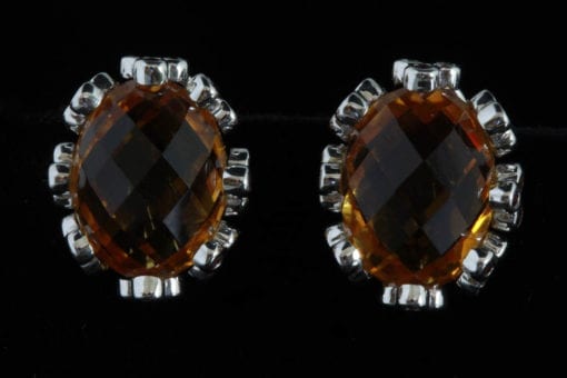 14k Yellow Gold Large 15mm Onyx Cabochon Cut Earrings w/ 4 Curved Gold Accents and Omega Backs – F536