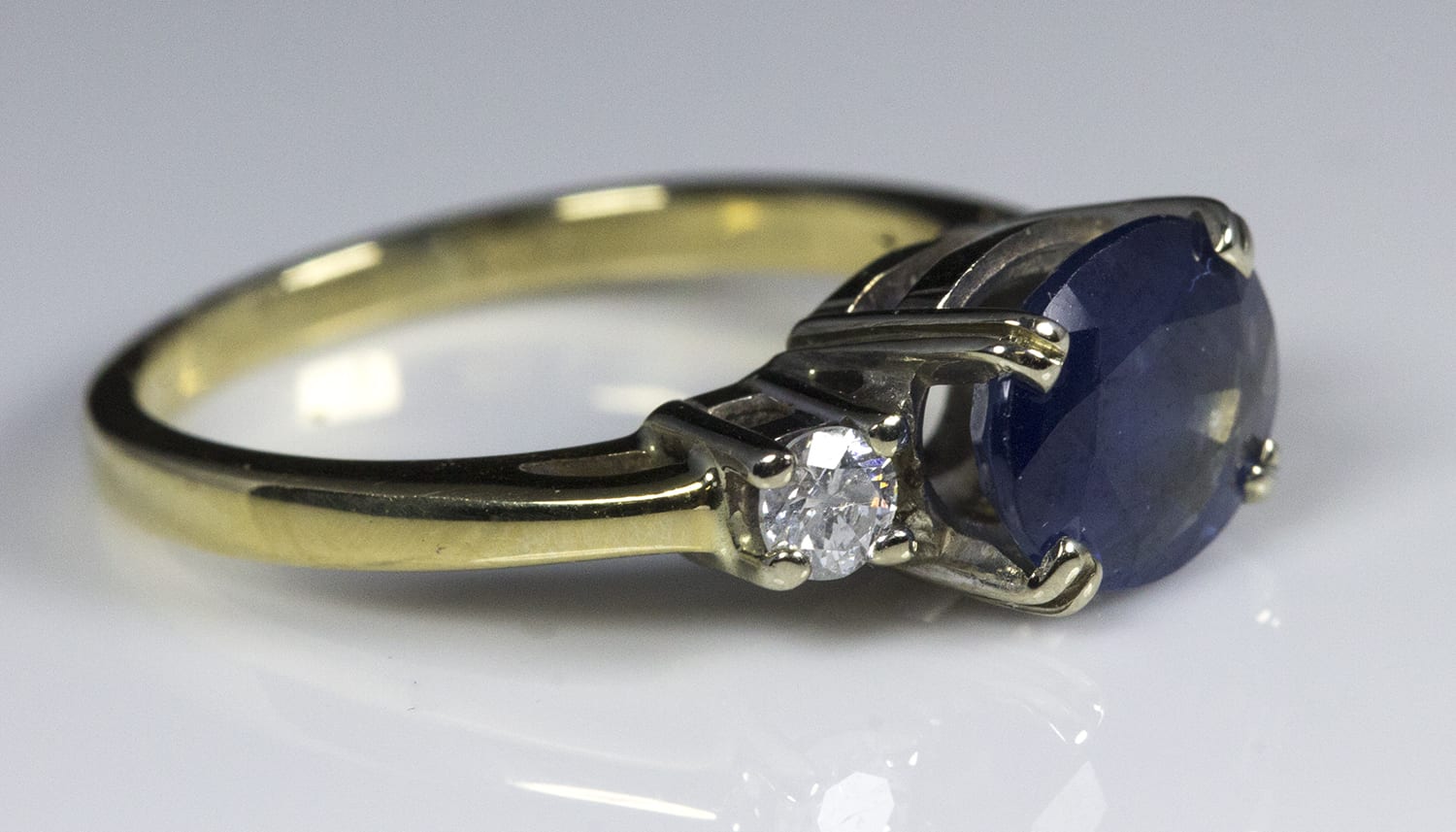 / 14k Yellow Gold Oval Blue Sapphire w/ 2 RBC Diamonds Ring – F95
