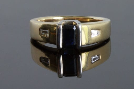 14k Yellow Gold Sapphire Ring with Diamond Baguette Accents