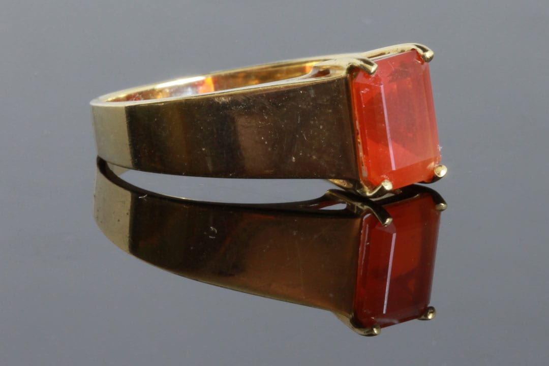 Cut: European Stone: Fire Opal Color: Slightly Hazy Yellow Gold Style: Cathedral